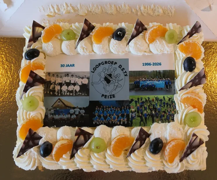 Rond 12 uur kwamen de groepen aan bij het Sporthuis. Daar werd een clubfoto gemaakt. De foto geeft een beeld van de verschillende kleding, die de loopgroep van 1997-2025 heeft gedragen/draagt. In het Sporthuis wachtte voor alle deelnemers een kop koffie/thee en een stuk jubileumtaart. Tot slot werden de foto’s over de 30-jarige geschiedenis van de loopgroep D.S.T.V. vertoond.
