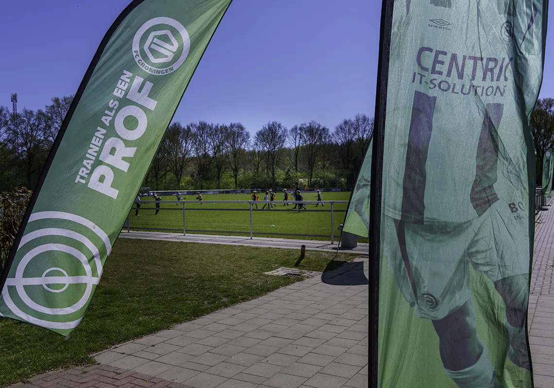 Op de velden van voetbalvereniging Peize hebben dinsdag 96 jeugdvoetballers – waarvan een derde uit Peize – een trainingsdag beleefd alsof ze profvoetballers waren. Onder leiding van (jeugd)trainers van FC Groningen werd er ’s ochtends intensief getraind, met veel aandacht voor techniek. Het accent lag daarbij op onderscheppen en het spel snel naar voren verplaatsen.