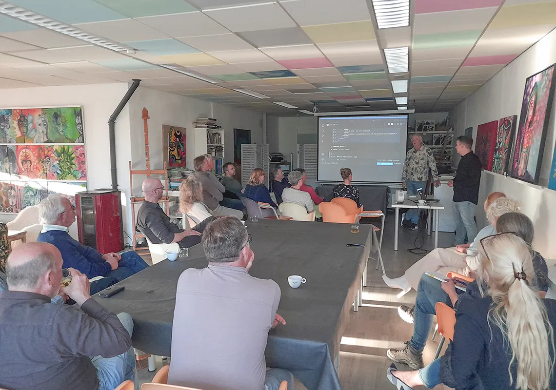 Donderdagavond waren de leden van het ondernemersnetwerk te gast bij Cees Boon in galerie Serpentijn aan de Oude Velddijk waar hij en Daniël Heesen de aanwezigen wat gingen vertellen over kunstmatige intelligentie, beter bekend als AI. Wat doet AI en wat kun je ermee en wat moet je vooral niet doen. Er werden ervaringen uitgewisseld en wat duidelijk naar voren kwam, is dat niet elke branche even geschikt is voor het gebruik van AI. Wat het wel voor je kan doen, is oa heel snel informatie vergaren waar je anders heel lang over zou doen. Ondernemers en AI kan zeker een match zijn, maar voorkom risico’s.