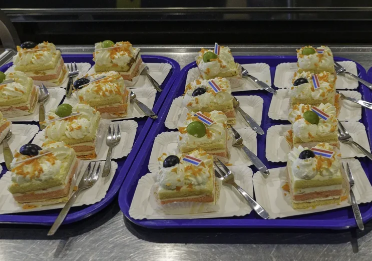Na het opspelden van het lintje, het maken van foto’s door de aanwezige pers en de felicitaties van iedereen, volgde koffie met een heerlijk oranje gebakje.