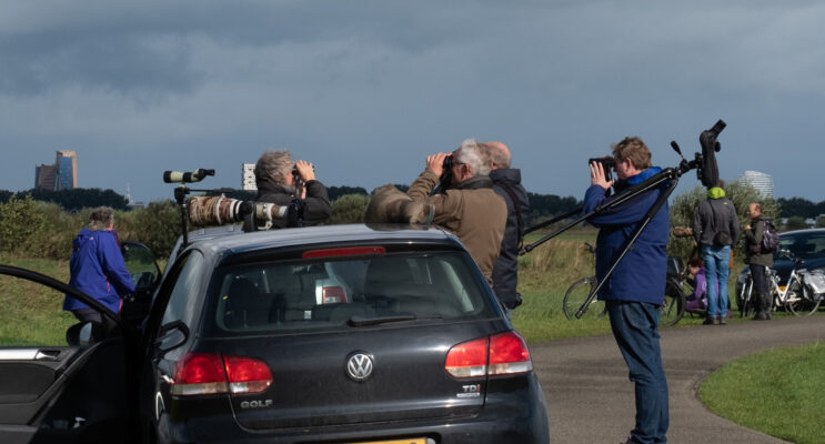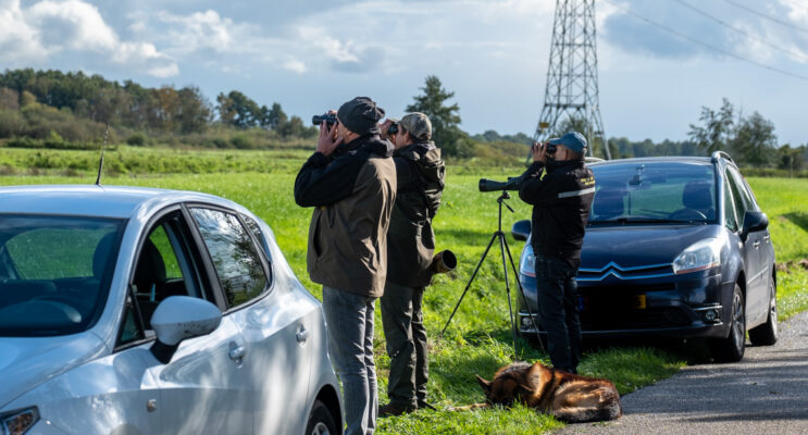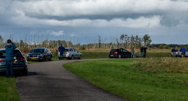 De spotters die zaterdagmiddag op de Woudrustlaan, Zanddijk en Wolddijk stonden moesten het doen met overvliegende ooievaars, reigers, zeearenden en buizerds maar de grijze wouw liet zich niet zien, wat ’s ochtends nog wel het geval was geweest.